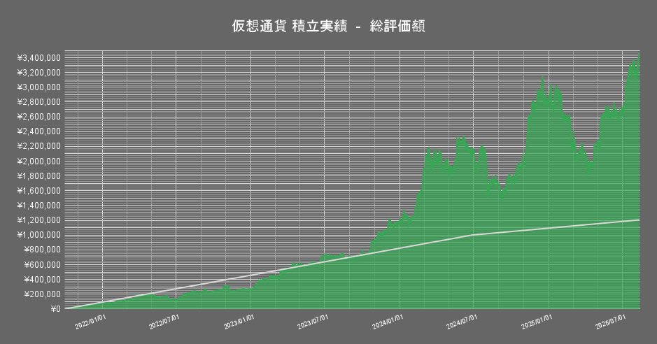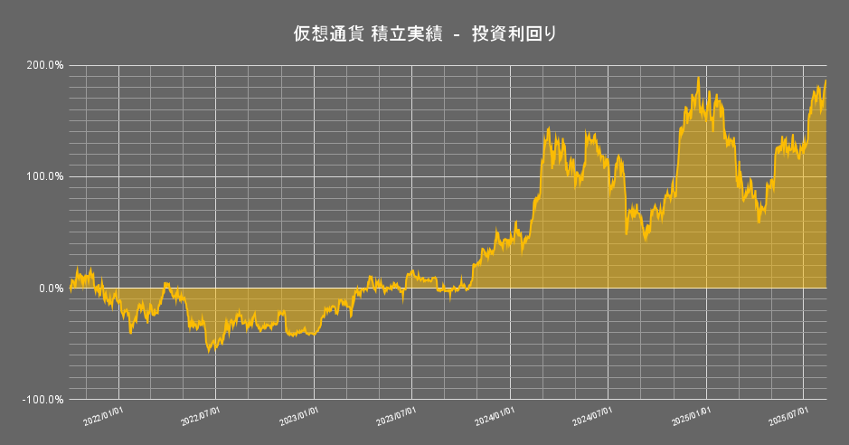 本記事では、私が2021年10月1日から続けている暗号資産(仮想通貨)の積立投資の運用結果について、積立202週目の2025年8月12日時点の成績を公開します。