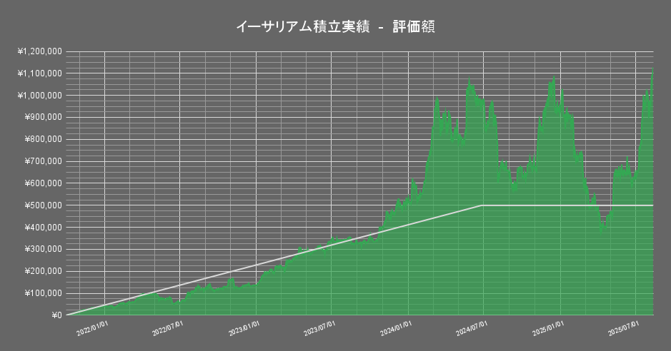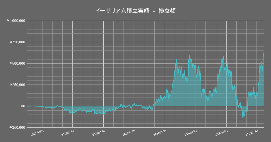 保有する暗号資産のうち「イーサリアム」の積立投資成績の推移は以下の通りです。