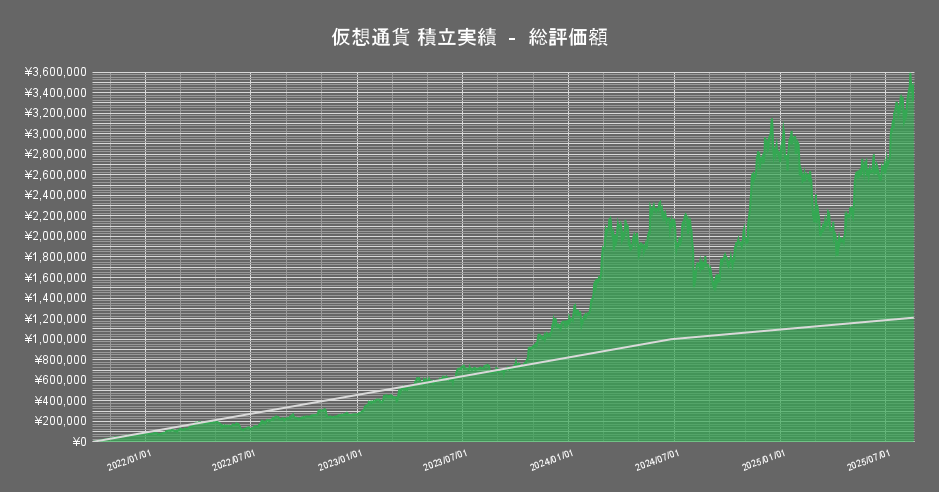 本記事では、私が2021年10月1日から続けている暗号資産(仮想通貨)の積立投資の運用結果について、積立203週目の2025年8月19日時点の成績を公開します。