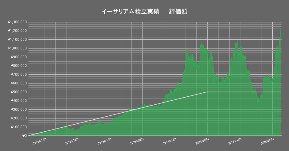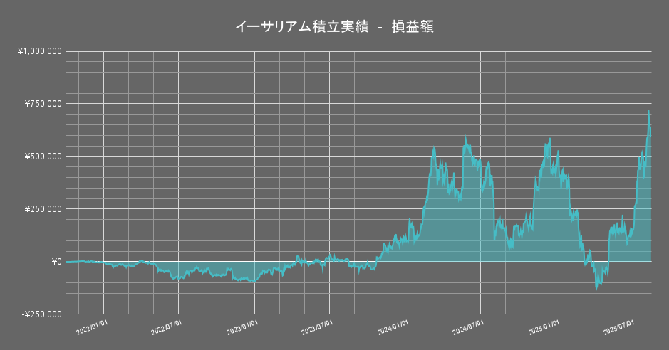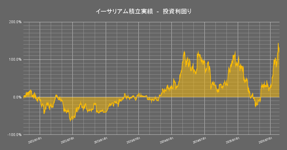 保有する暗号資産のうち「イーサリアム」の積立投資成績の推移は以下の通りです。