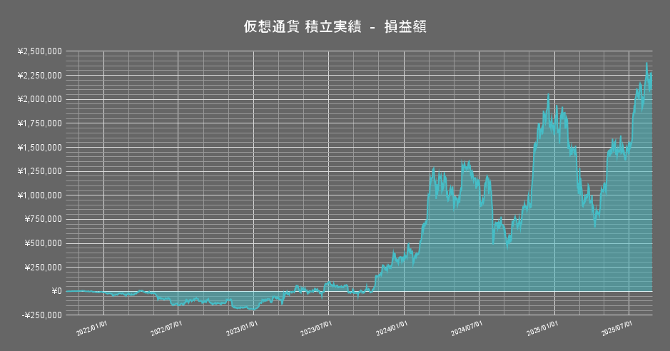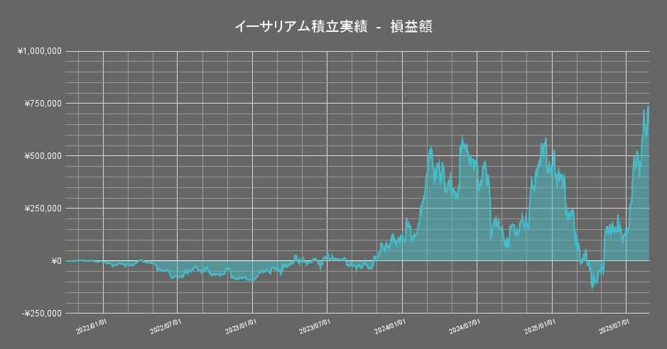 保有する暗号資産のうち「イーサリアム」の積立投資成績の推移は以下の通りです。