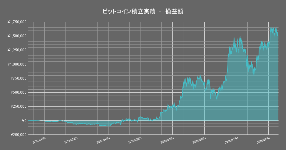 保有する暗号資産のうち「ビットコイン」の積立投資成績の推移は以下の通りです。(積立1426日目時点)