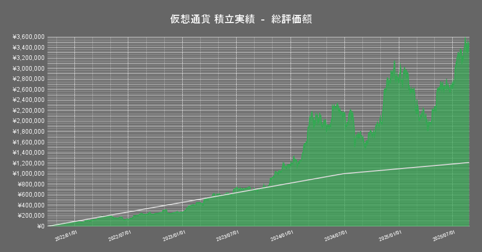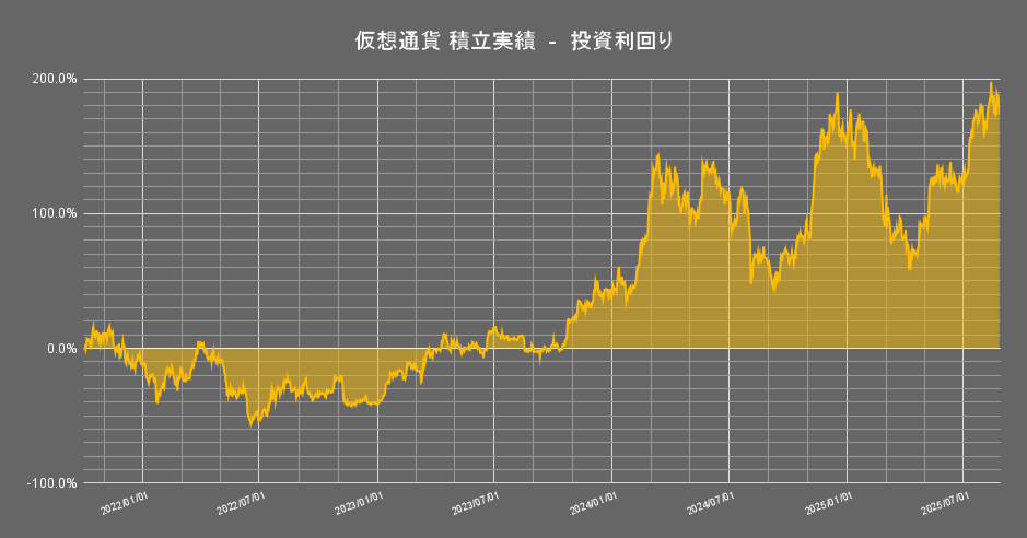 本記事では、私が2021年10月1日から続けている暗号資産(仮想通貨)の積立投資の運用結果について、積立204週目の2025年8月26日時点の成績を公開します。