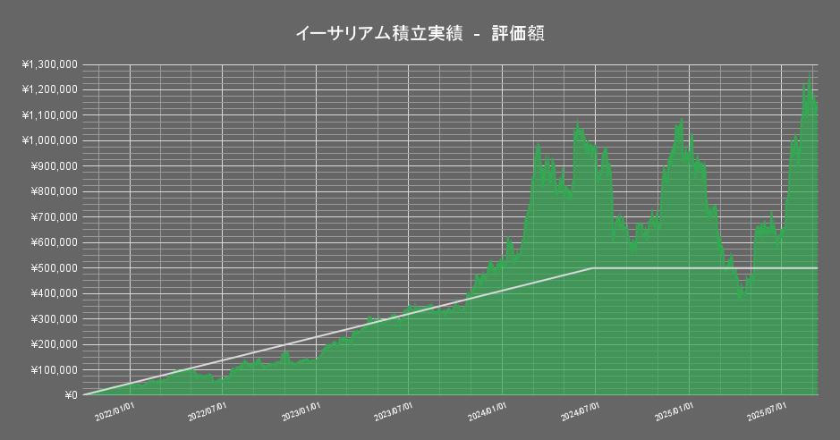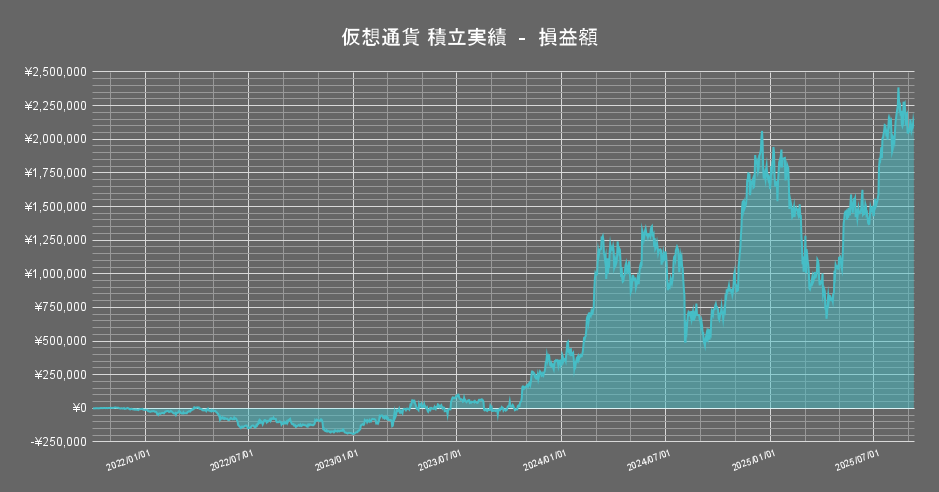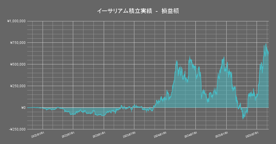 保有する暗号資産のうち「イーサリアム」の積立投資成績の推移は以下の通りです。