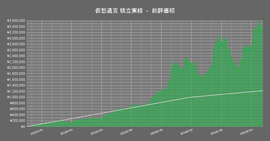 本記事では、私が2021年10月1日から続けている暗号資産(仮想通貨)の積立投資の運用結果について、積立206週目の2025年9月9日時点の成績を公開します。