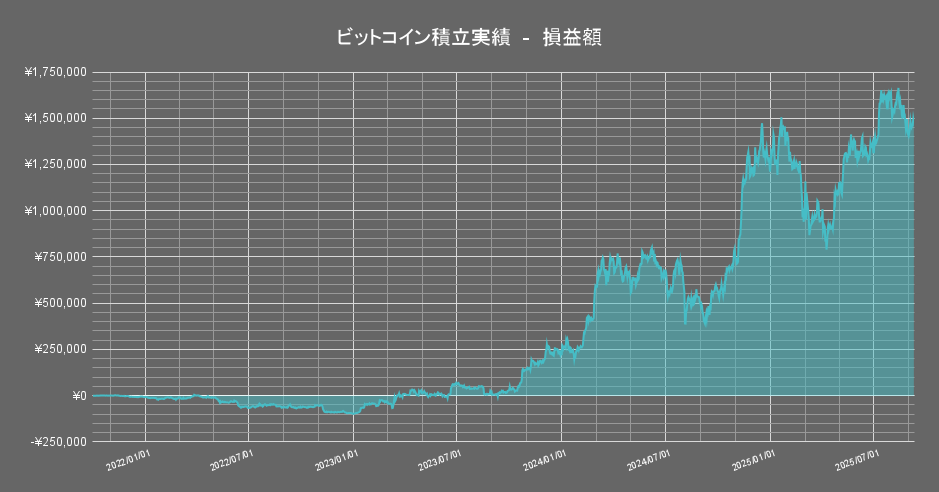 保有する暗号資産のうち「ビットコイン」の積立投資成績の推移は以下の通りです。(積立1440日目時点)