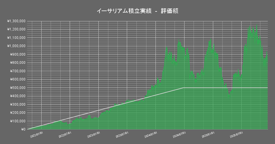 保有する暗号資産のうち「イーサリアム」の積立投資成績の推移は以下の通りです。