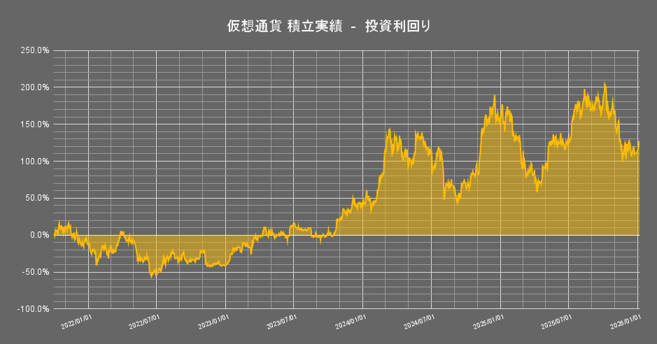 本記事では、私が2021年10月1日から続けている暗号資産(仮想通貨)の積立投資の運用結果について、積立223週目の2026年1月6日時点の成績を公開します。