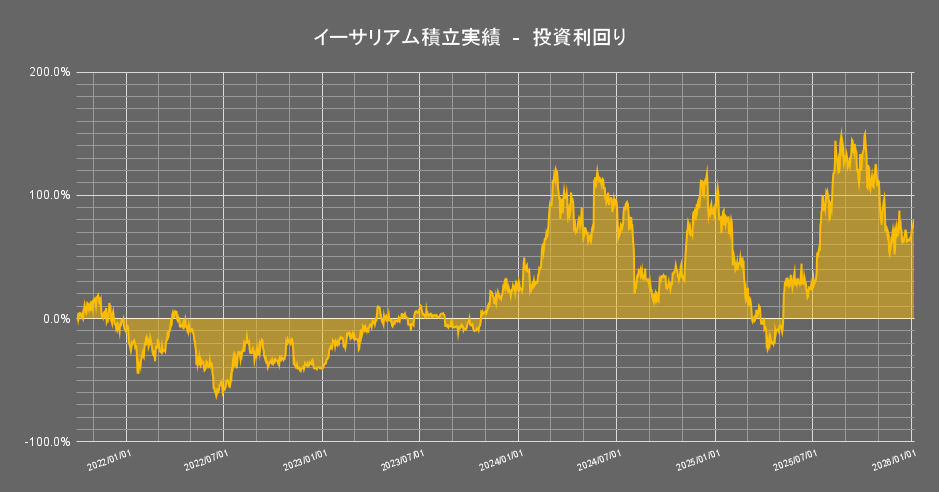 保有する暗号資産のうち「イーサリアム」の積立投資成績の推移は以下の通りです。