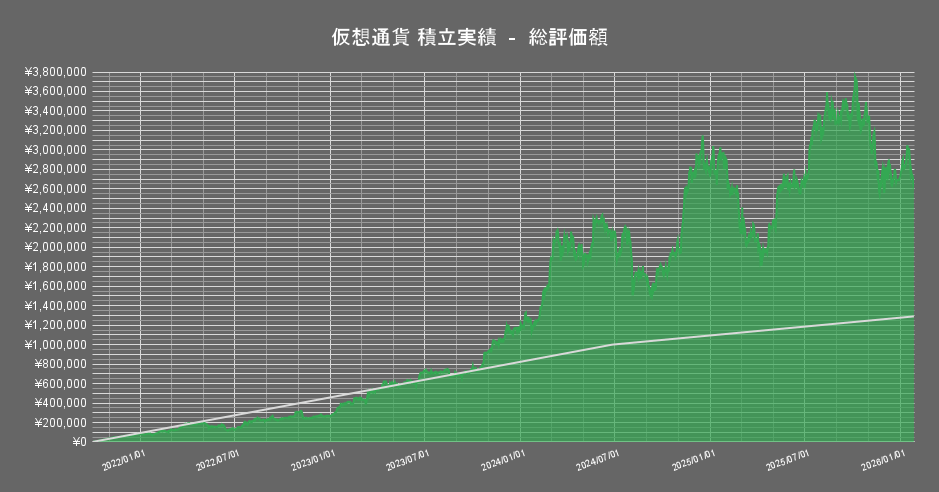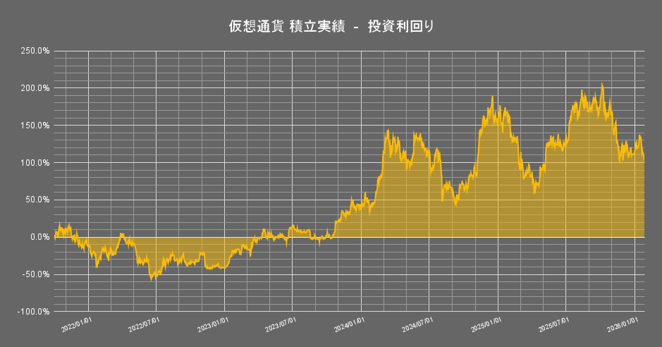 本記事では、私が2021年10月1日から続けている暗号資産(仮想通貨)の積立投資の運用結果について、積立226週目の2026年1月27日時点の成績を公開します。
