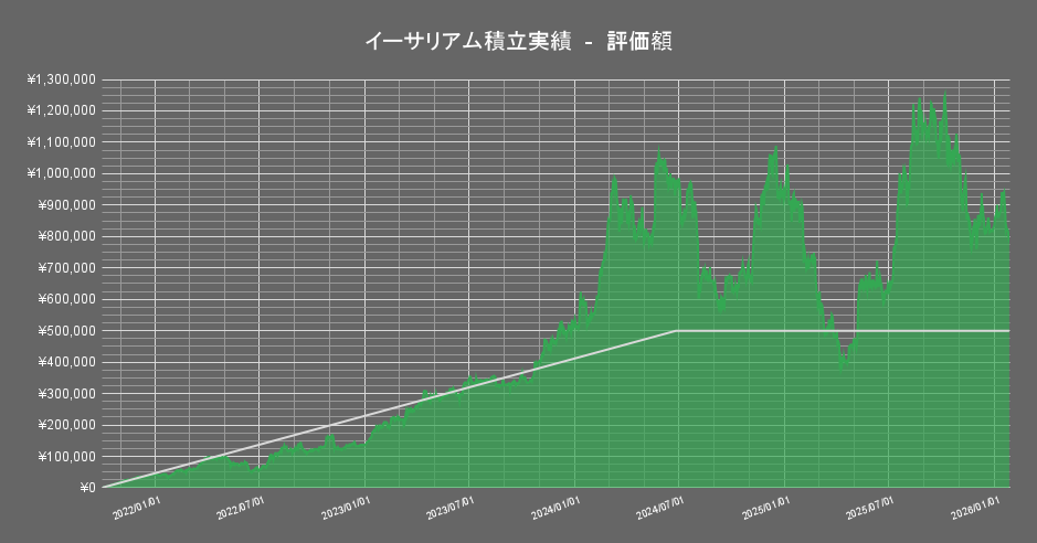 保有する暗号資産のうち「イーサリアム」の積立投資成績の推移は以下の通りです。