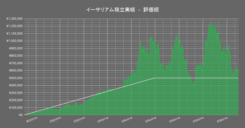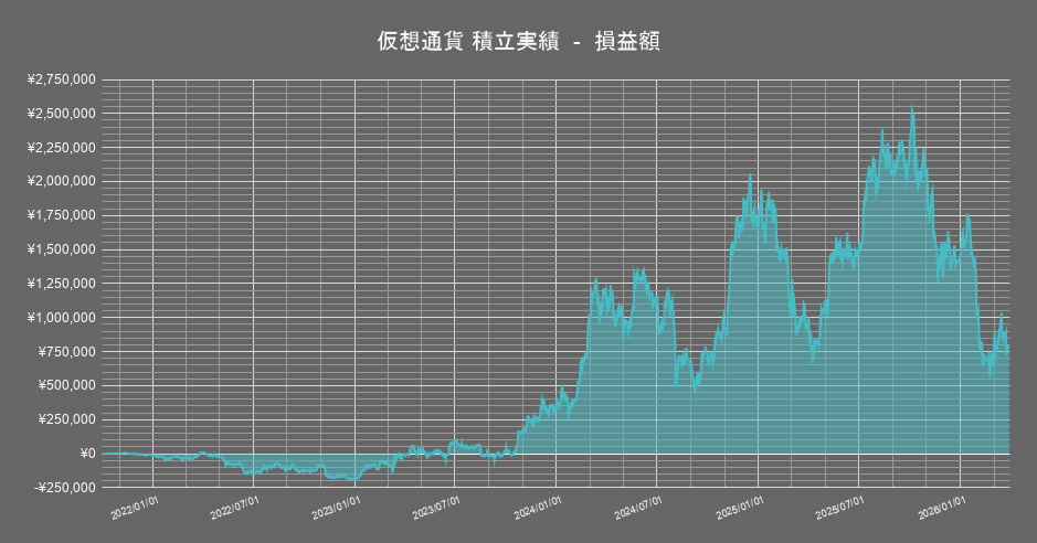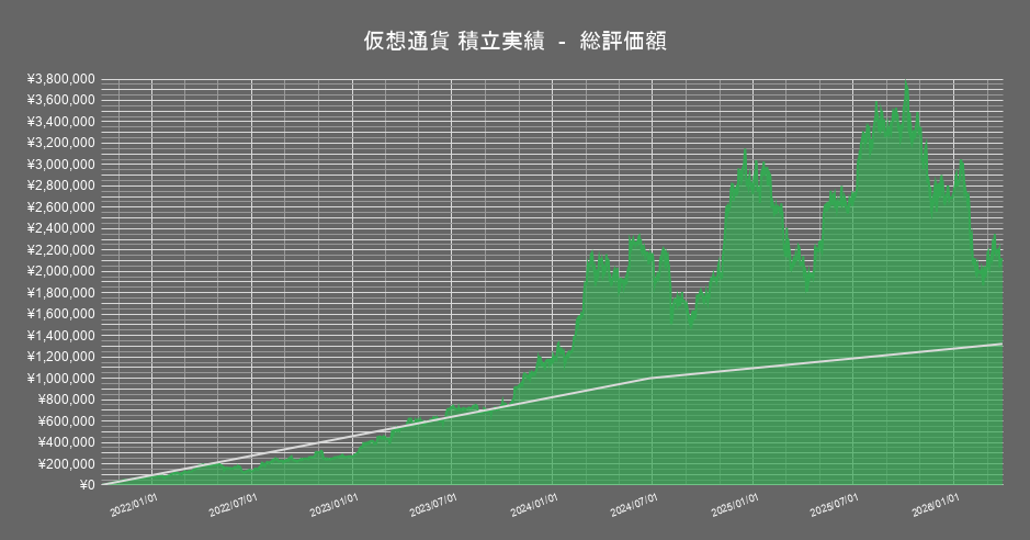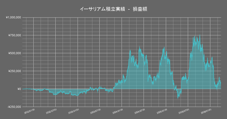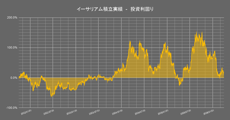 保有する暗号資産のうち「イーサリアム」の積立投資成績の推移は以下の通りです。