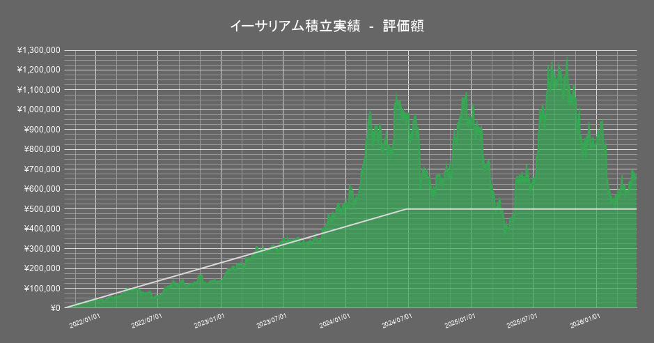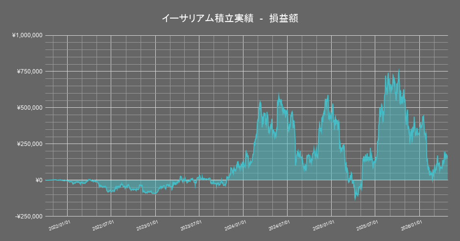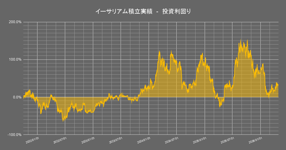 保有する暗号資産のうち「イーサリアム」の積立投資成績の推移は以下の通りです。