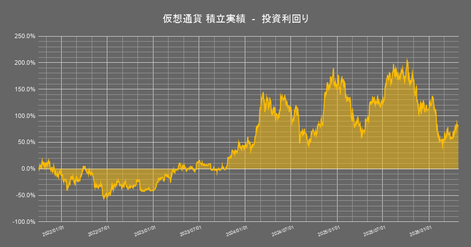 本記事では、私が2021年10月1日から続けている暗号資産(仮想通貨)の積立投資の運用結果について、積立239週目の2026年4月28日時点の成績を公開します。